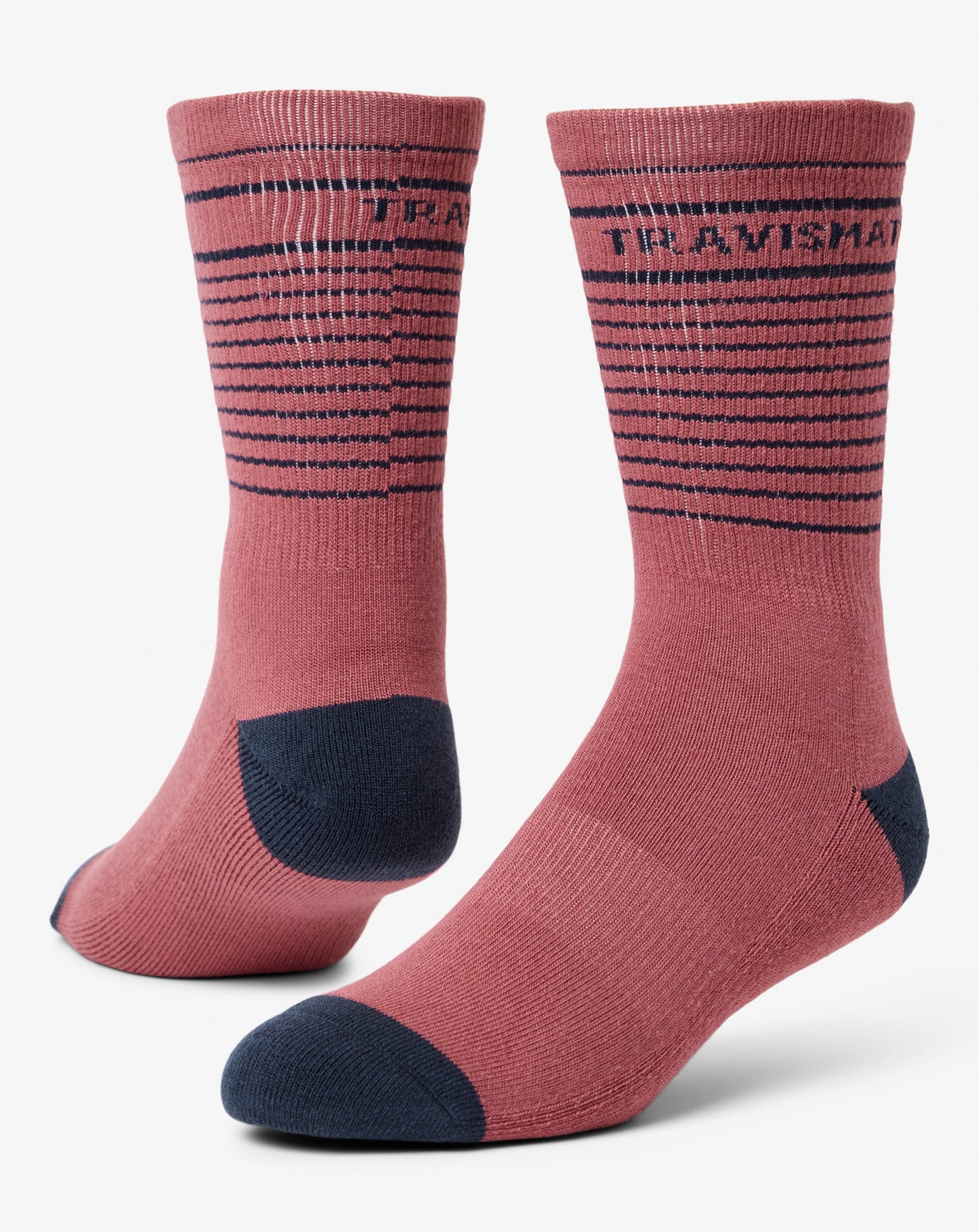 With an ultra-cushioned sole and no-slip cuff, the OVERALL MOOD crew sock delivers support and breathability, accented by a horizontal stripe pattern on a fun, eye-catching color and finished with bold stripes and a TravisMathew block logo along the cuff.