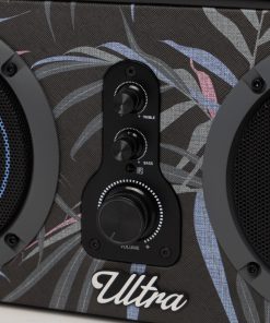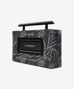TravisMathew and Bumpboxx have joined forces to bring you the PRIVATE LOUNGE Bluetooth boombox. Using the Ultra model from Bumpboxx, we added our own spin with a retro tropical print and signature artwork on the speakers. This unit has large woofers and 150 watts of TRUE power. This is perfect for those seeking deeper bass to go along with crystal clear music. Even with the music loud, the Ultra can last up to 12 hours with the rechargeable lithium battery. There are multiple options to choose how to play your music; use the Bluetooth which can connect from long distances, use the 3.5 mm aux input, or play music from the USB Drive.