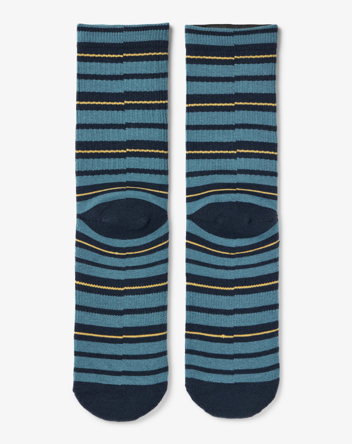 With an ultra-cushioned sole and no-slip cuff, the WANDER WHEREVER crew sock delivers support and breathability, all in a classic horizontal stripe pattern with subtle pops of color.