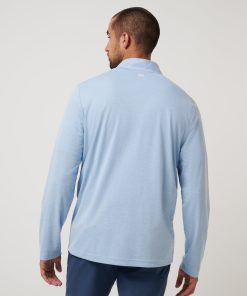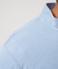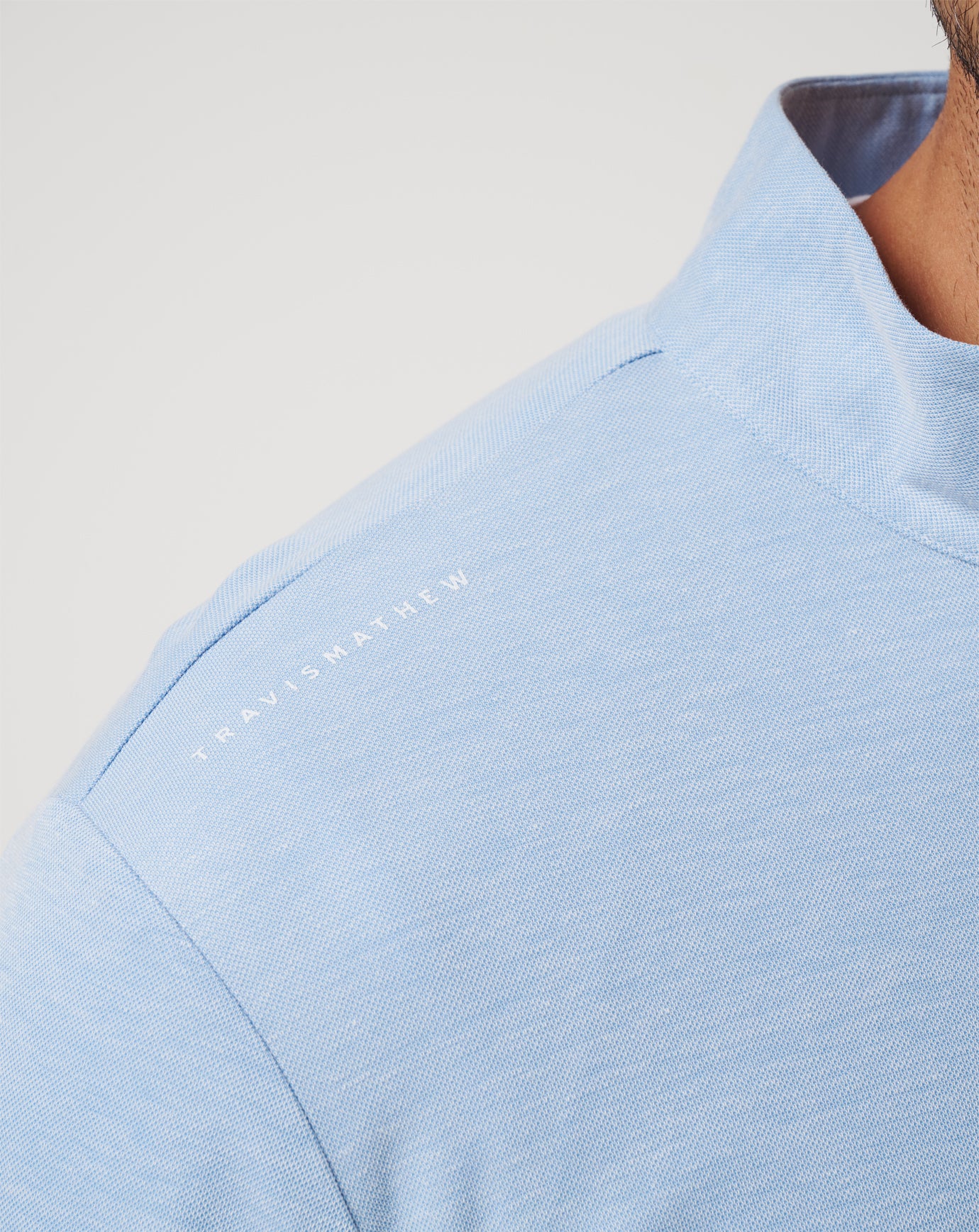 - TravisMathew logo printed on shoulder seam.
