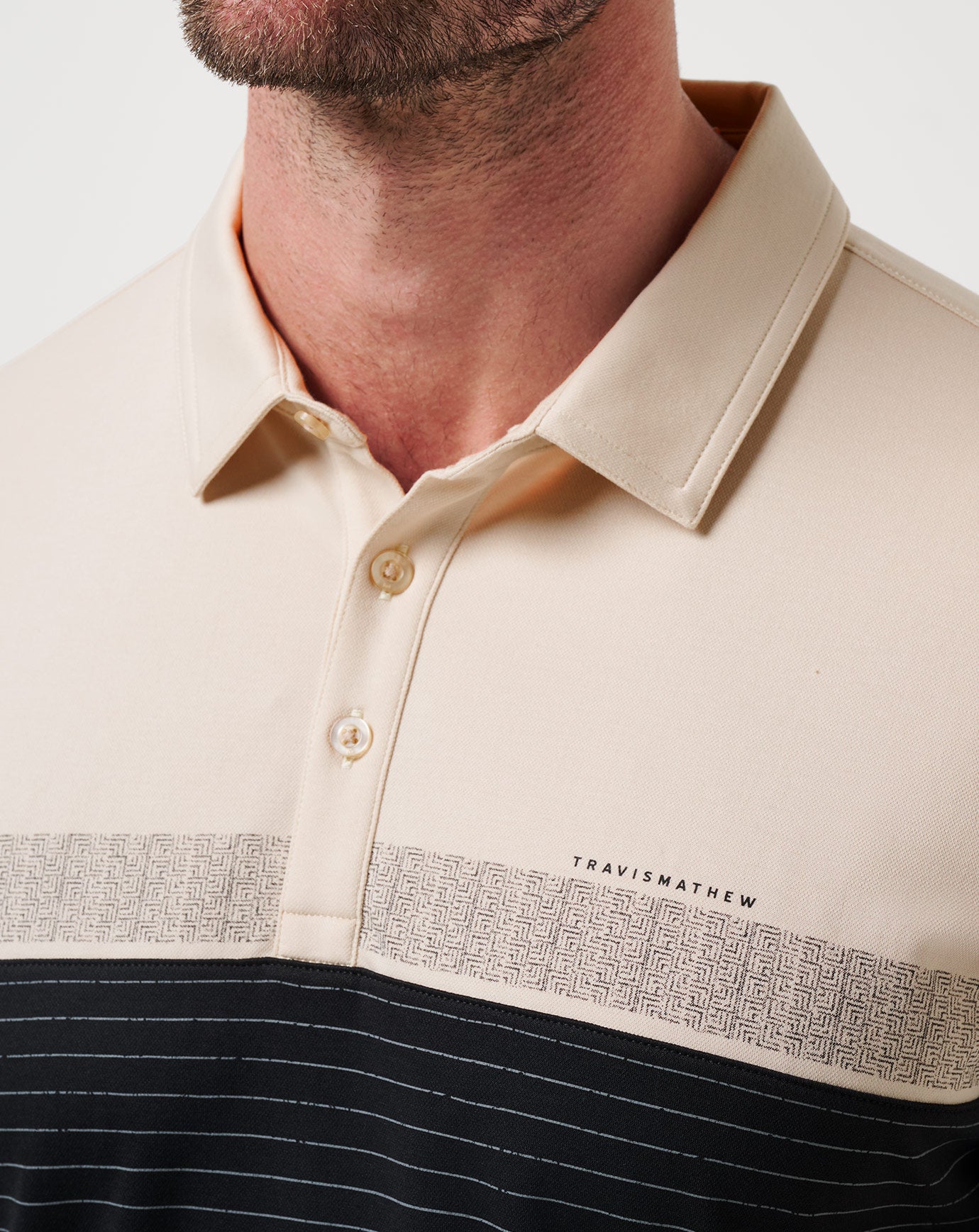 Take your polo game to new heights with HANG GLIDE. Featuring classic color-block styling, a textured chest stripe, and a TravisMathew block logo, built-in collar stays keep things crisp, while the comfort level is sky-high.