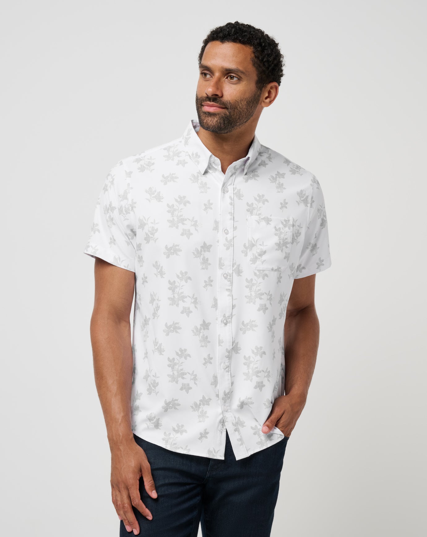 The MIST ON THE LAKE button-up brings vacation vibes to everyday wear. With an all-over floral print and our lightweight Tech Woven fabric, it delivers breathable comfort in a crisp, polished silhouette. Built with just the right amount of stretch, it’s your go-to for sunny days and sharp style.
