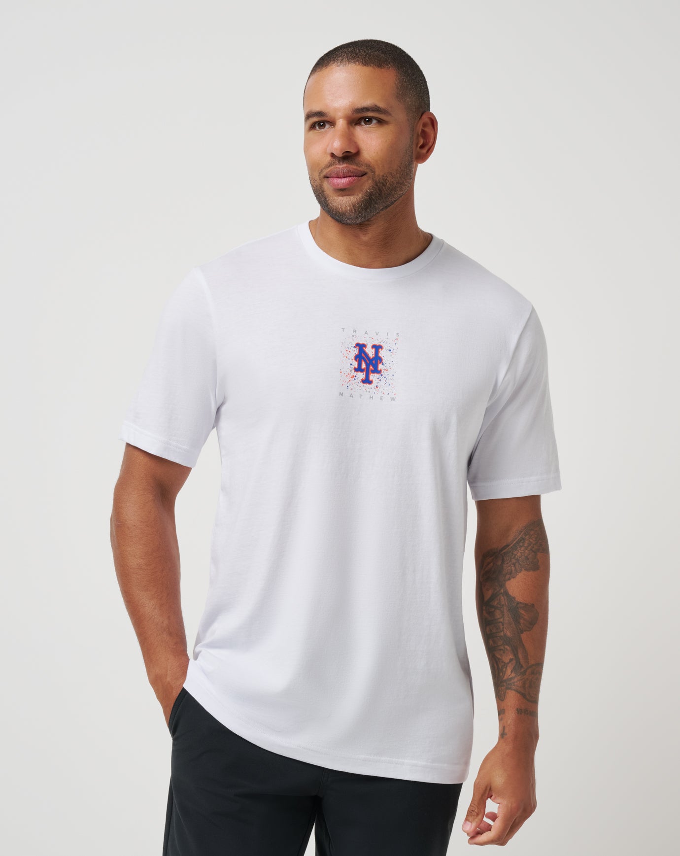 The IN THE DUGOUT 2.0 NYM t-shirt delivers custom TravisMathew splatter print style with the New York Mets logo. Has there ever been a sweeter collaboration? Gear up with the MLB™ Collection by TravisMathew. Perfect for more than just game days, iconic TravisMathew comfort, style, and performance merges with Mets pride.