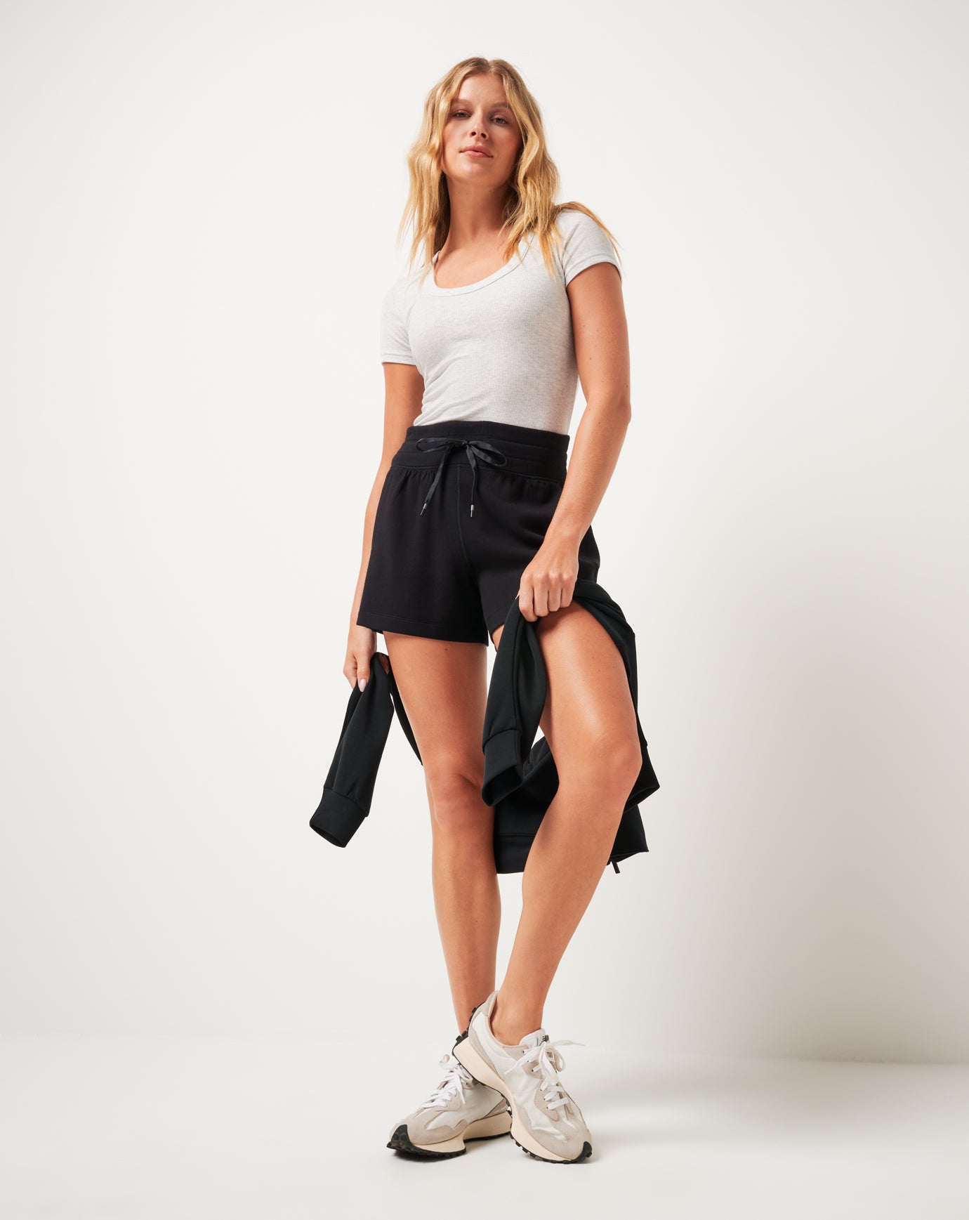 Hello comfort, my old friend. It’s nice to feel you once again. The SKYLOFT SOFT TIE SHORT is the best short you’ll ever wear. No, seriously. We created an absurdly soft modal blend with a bit of peaching for truly unbeatable comfort. It’s light and airy, cool to the touch, and brilliant. It’s a shame you can’t feel it through the screen because you’ll want to marry it. And the SKYLOFT SHORT is not only soft, it’s versatile, too. Whether you’re on the go or kicking back and relaxing, the side-seam pockets, elastic drawcord, and high-rise fit delivers elevated style, functionality, and a heck of a lot of bulk-free comfort.Pair it with a Cloud Tank or any of our Skyloft Soft tops for total body comfort.