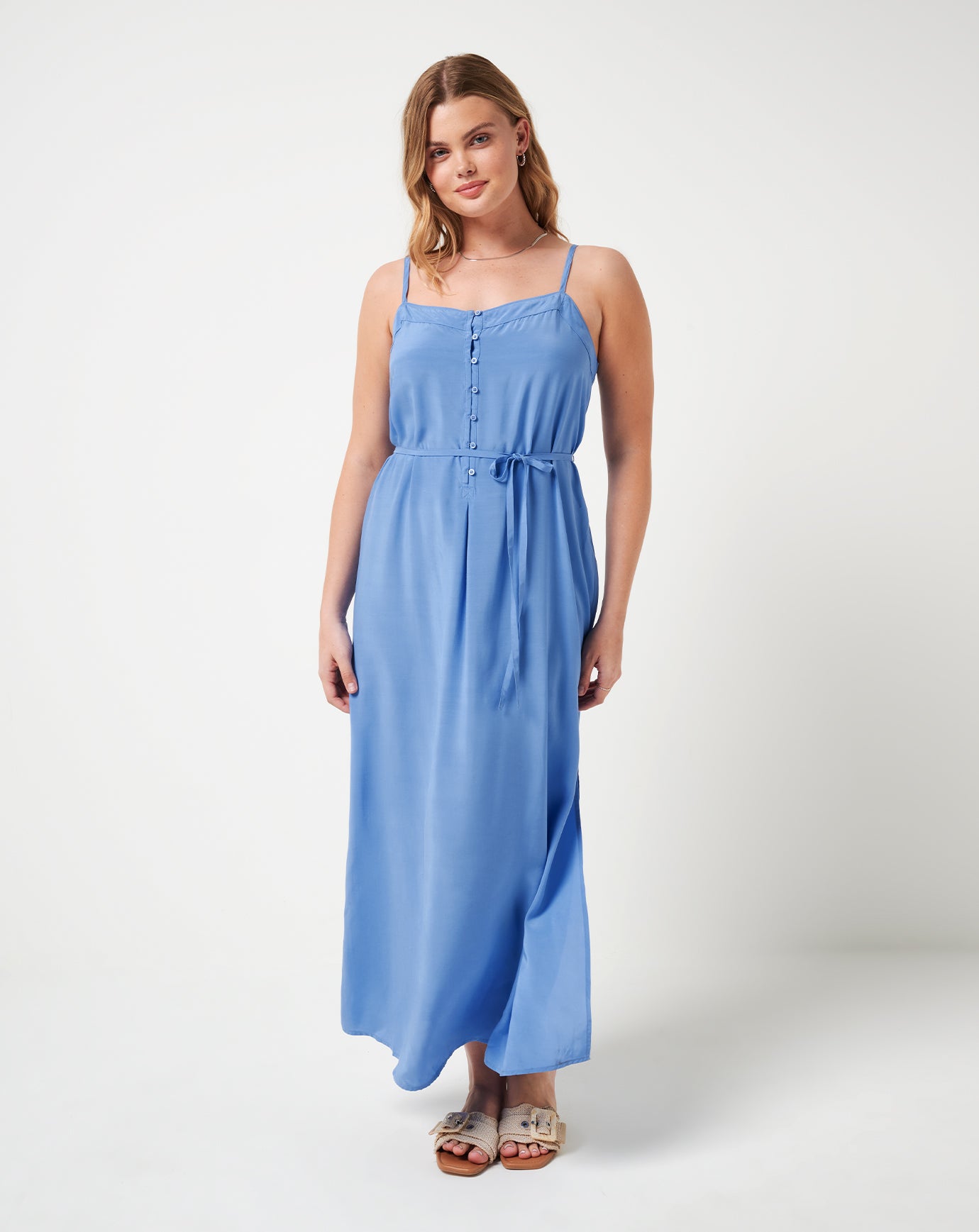 The SAVANNA TANK DRESS is the ultimate dress-up, dress-down MVP. Crafted with a flattering sweetheart neckline, adjustable straps, and a tie waist that cinches just right, it’s designed to make you feel like the moment. Full-length with breezy side slits, it’s perfect for sun-soaked picnics, moonlit strolls, or whenever you want to make an entrance without trying too hard.