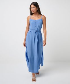 The SAVANNA TANK DRESS is the ultimate dress-up, dress-down MVP. Crafted with a flattering sweetheart neckline, adjustable straps, and a tie waist that cinches just right, it’s designed to make you feel like the moment. Full-length with breezy side slits, it’s perfect for sun-soaked picnics, moonlit strolls, or whenever you want to make an entrance without trying too hard.