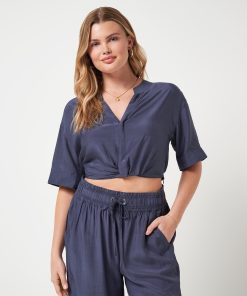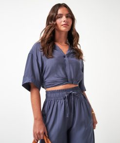 Meet the top that’s ready for sunshine, salty air, and wherever the day drifts next. The SAVANNA SHORT-SLEEVE is a lightweight, short sleeve twist-front top made from our new Challis fabric—a super soft, drapey woven blend that’s basically summer in fabric form. Designed with a relaxed fit, cropped length, and thoughtful details like an invisible side zip, single hidden button, and elastic back band, it’s easygoing in all the right ways.