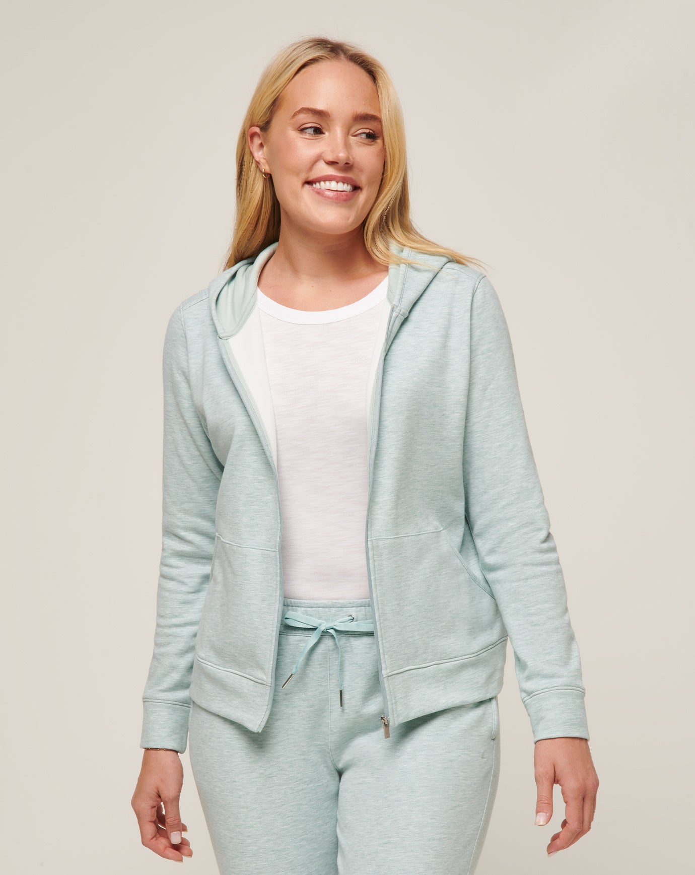 It may sound like an exaggeration, but the WOMENS CLOUD ZIP HOOD jacket is one of the most comfortable additions you could add to your wardrobe. Thoughtfully crafted from our famously soft Cloud Collection fabric, this layer doesn’t just deliver comfort and warmth, it also delivers effortless style with satin trim and darted details for a tailored silhouette.