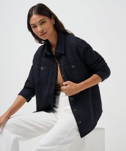 Your boyfriend’s shirt has nothing on our DIAMOND QUILTED SHACKET. With quilted double-knit fabric that supplies stretch and soft comfort, the shacket delivers a luxe, effortless look that has endless styling potential.