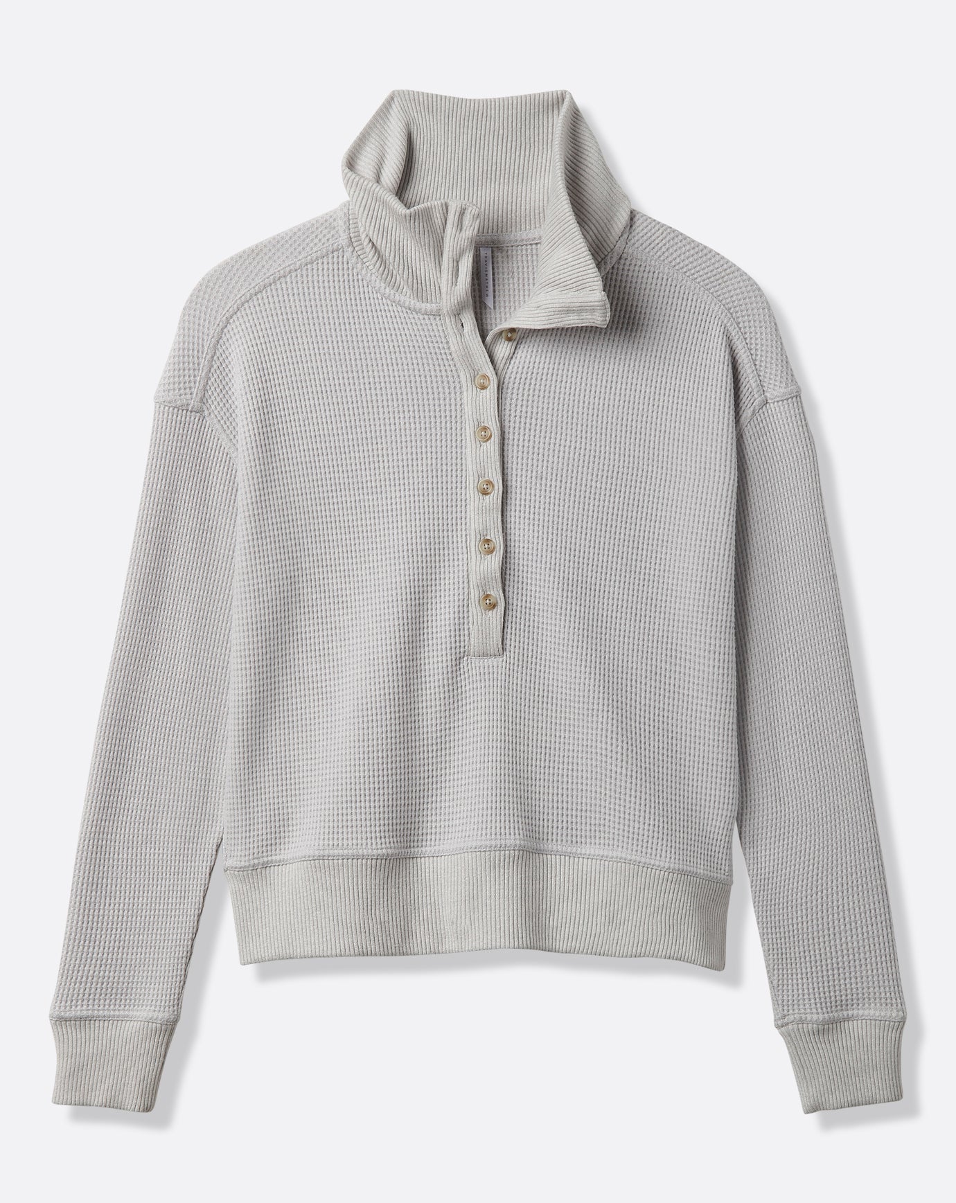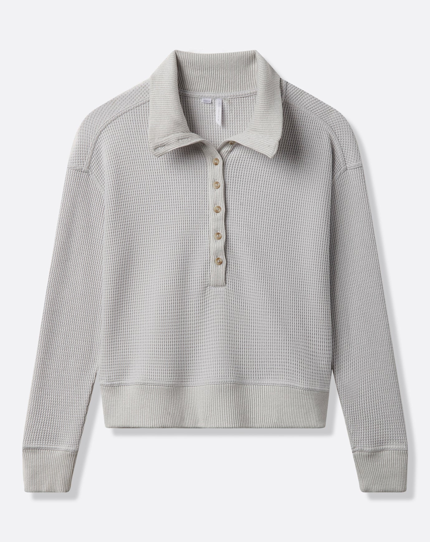 Looking for the perfect holiday gift? We’ve got you. Ideal like a long weekend, the (aptly named) LONG WEEKEND HENLEY delivers comfort in the form of ultra-soft, heathered waffle fabric designed for peak versatility. Wear it around the house or on the go, the oversized collar and ribbed details radiate style and comfort that could rival the feeling she’ll get when she unwraps this gift for the first time.